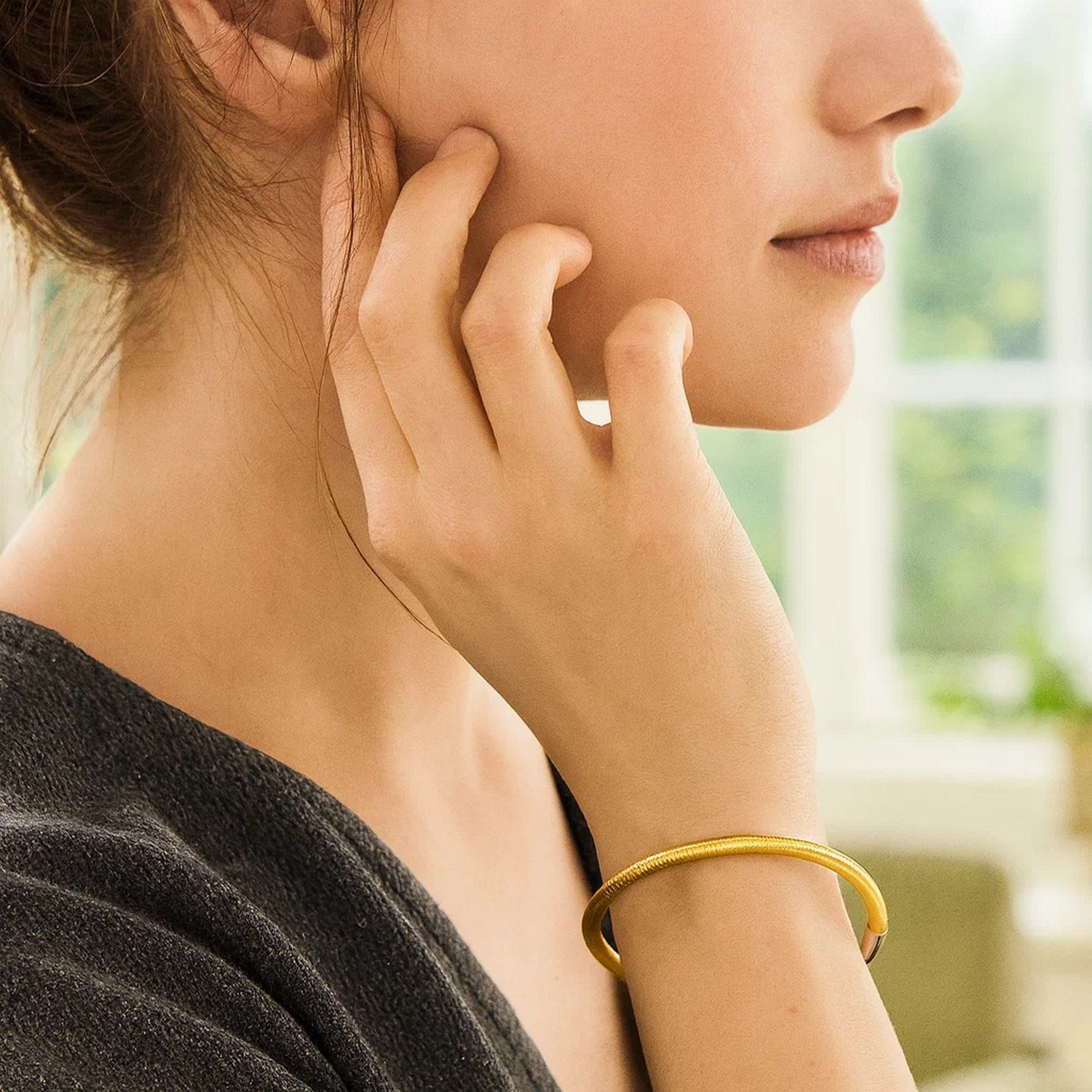 Sterling Silver Gold-Plated Basketweave Stretch Bangle featuring an intricate basketweave pattern crafted in sterling silver with a warm gold-plated finish. Its flexible stretch design offers a comfortable fit and a stylish, textured look perfect for everyday wear or stacking.
