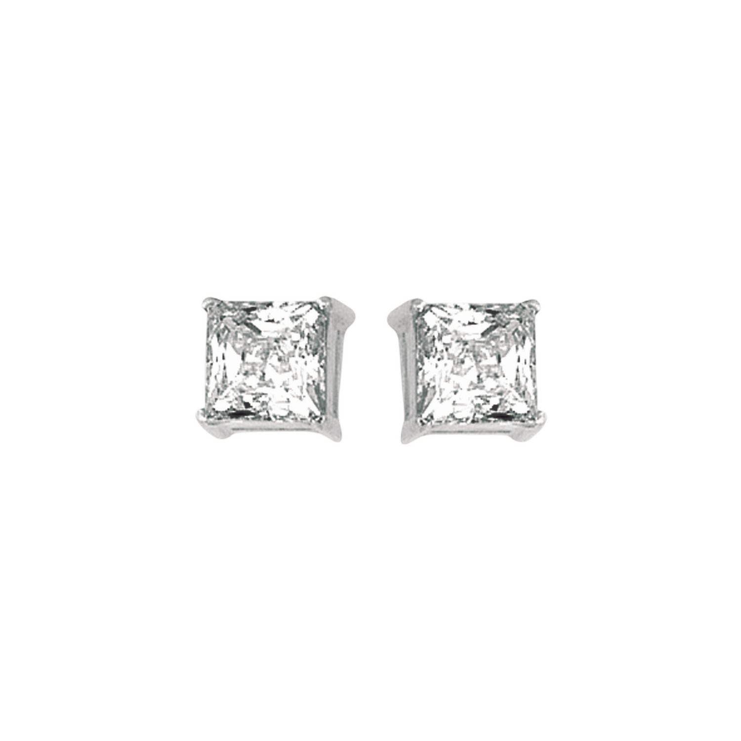Elegant sterling silver princess CZ stud earrings (6.00 mm) featuring sparkling princess-cut cubic zirconia set in a polished sterling silver frame. Their timeless brilliance and refined design make them perfect for both everyday wear and special occasions.