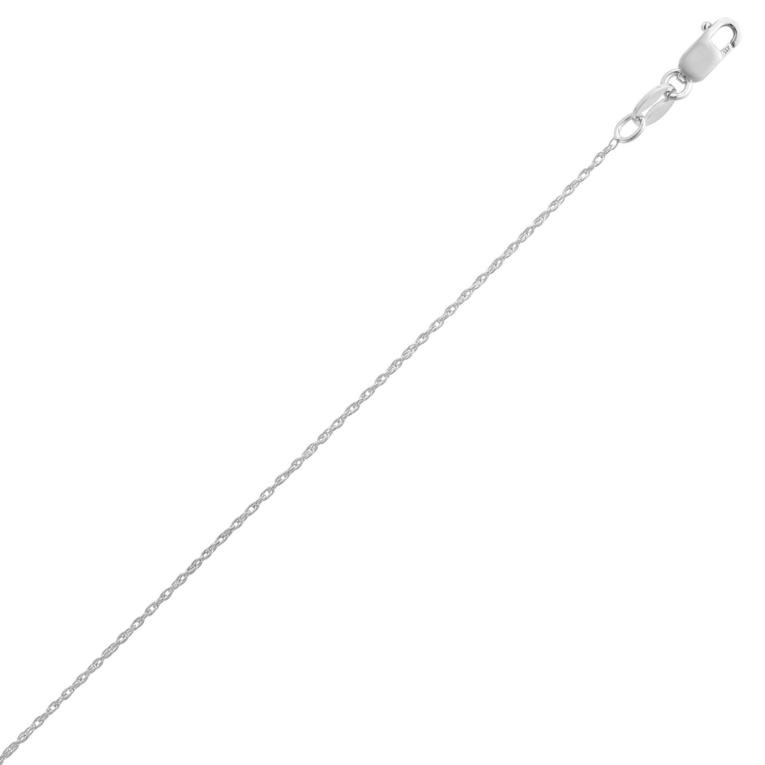 Crafted in sterling silver and enhanced with a sleek rhodium finish, this 1.06 mm machine rope chain features a tightly twisted design that delivers lasting strength and a bright, polished shine, making it a versatile piece perfect for everyday wear or pairing with a favorite pendant.