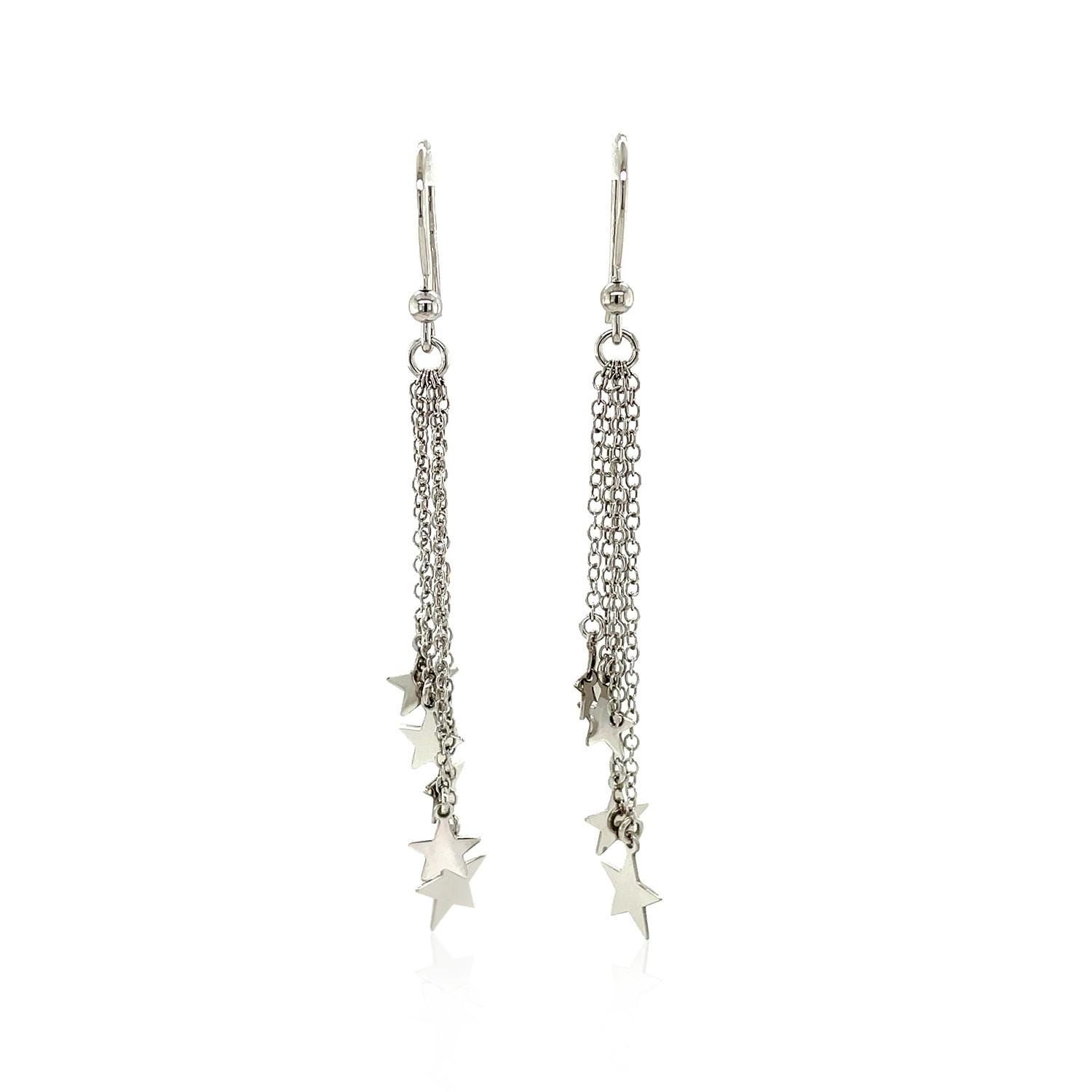 The polished stars that dangle from these sterling silver earrings flash and twinkle like shooting stars in a night sky. Earrings are approximately 38mm long and hang from Euro wires.